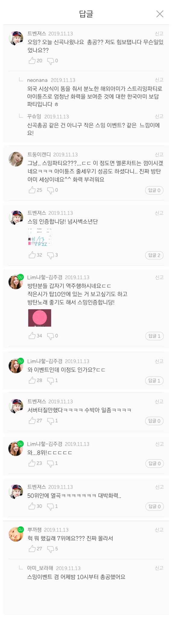 | 벌써부터 커뮤니티 작업치고 있는 ONCE 댓글 조작단들 똑같은 댓글과 똑같은 추천수... 단톡방 폭파하고 새로 만든 단톡방에 29명 들어왔나봄... |
